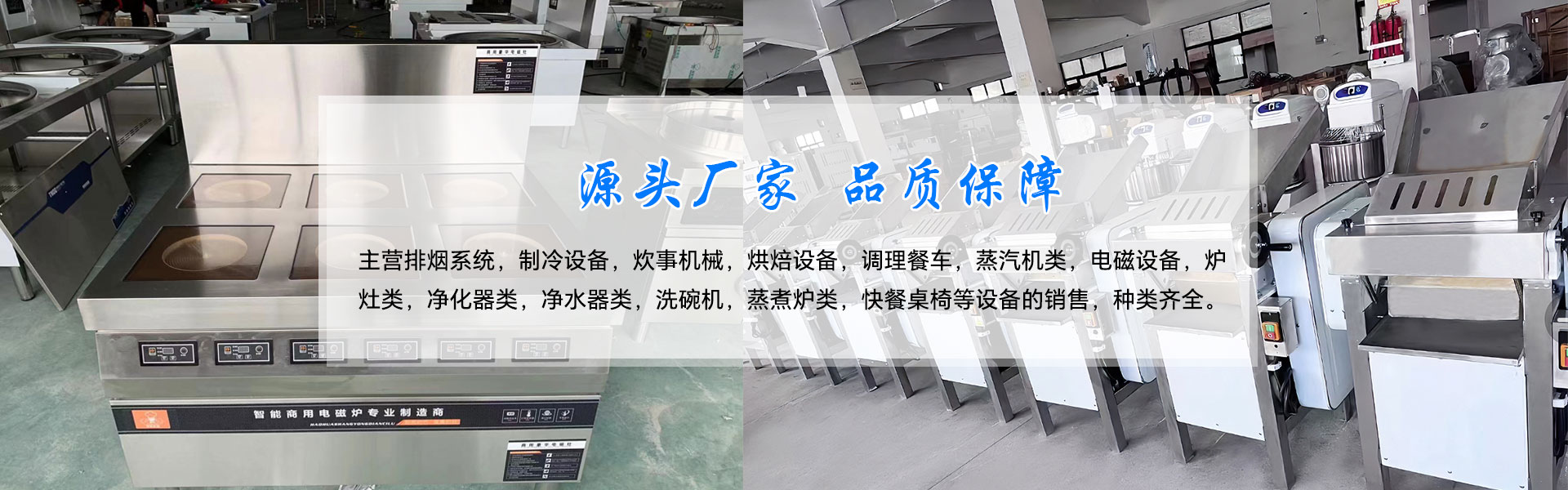 公司主營排煙系統(tǒng),制冷設(shè)備,炊事機(jī)械,烘焙設(shè)備,調(diào)理餐車,蒸汽機(jī)類,電磁設(shè)備,爐灶類,凈化器類,凈水器類,洗碗機(jī),蒸煮爐類,快餐桌椅等設(shè)備的銷售,種類齊全。